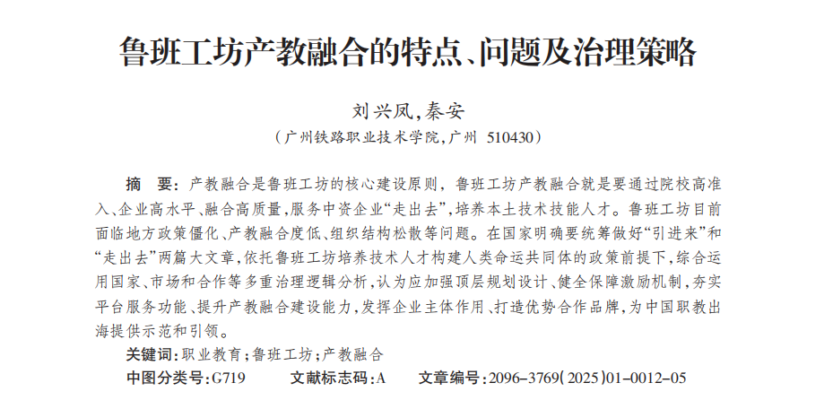 参考文献引用格式:刘兴凤,秦安.鲁班工坊产教融合的特点、问题及治理策略[J].天津中德应用技术大学学报,2025(01):12-16.